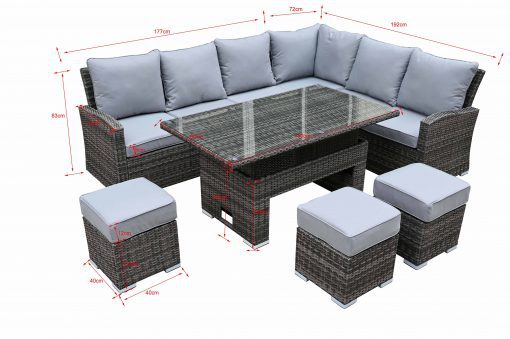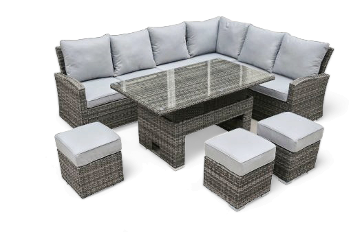 Cambridge Rattan Grey Casual Dining Corner Sofa Set With Rising Table | Camb181G