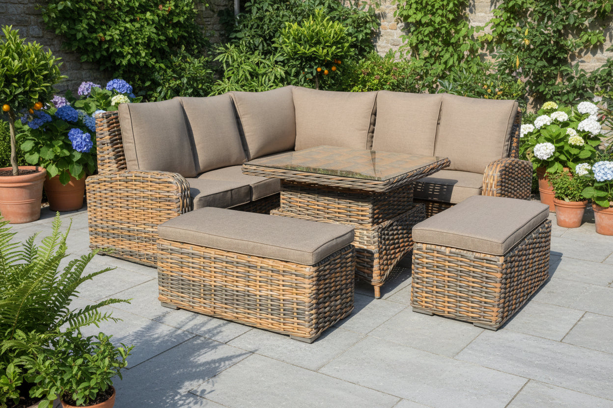Anna Rattan Brown Large Corner Sofa Set with Rising Table