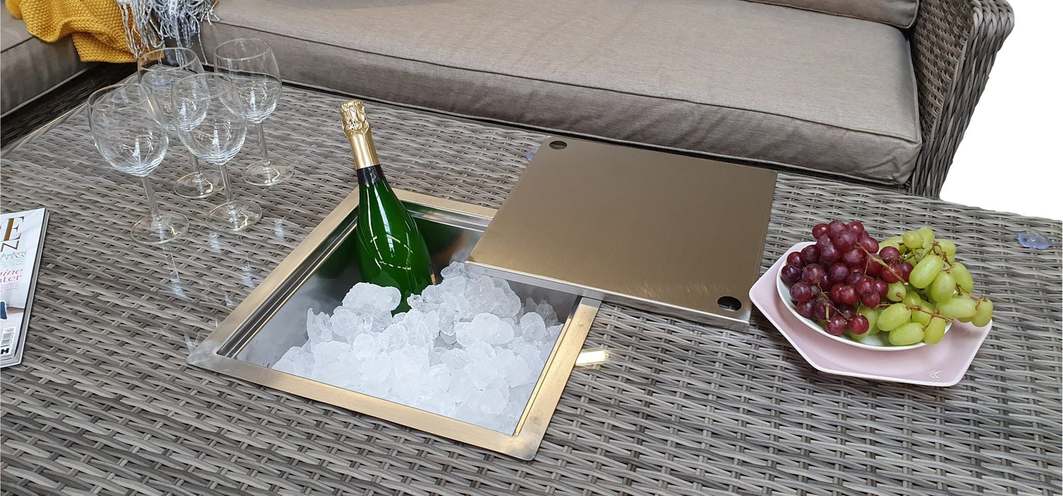 Absolutely! The centre of the table features a built-in ice bucket to keep your drinks chilled and within reach during gatherings.