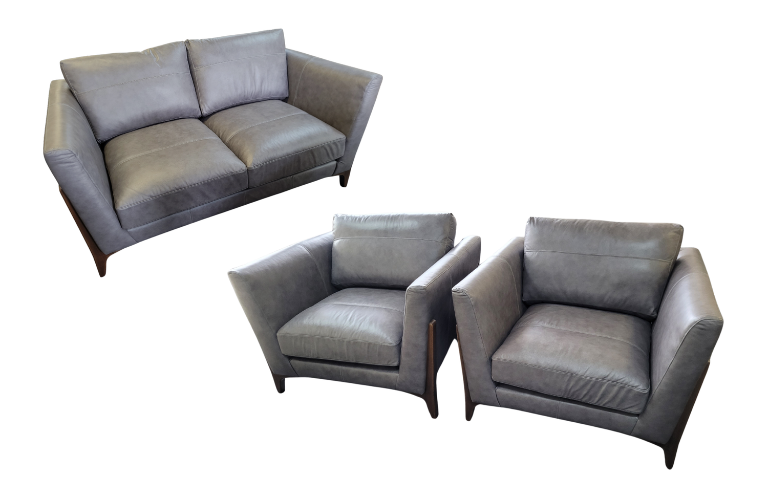 Ex-Display Ren Grey Leather 2 Seater Sofa + 2 Chairs | EXRENG