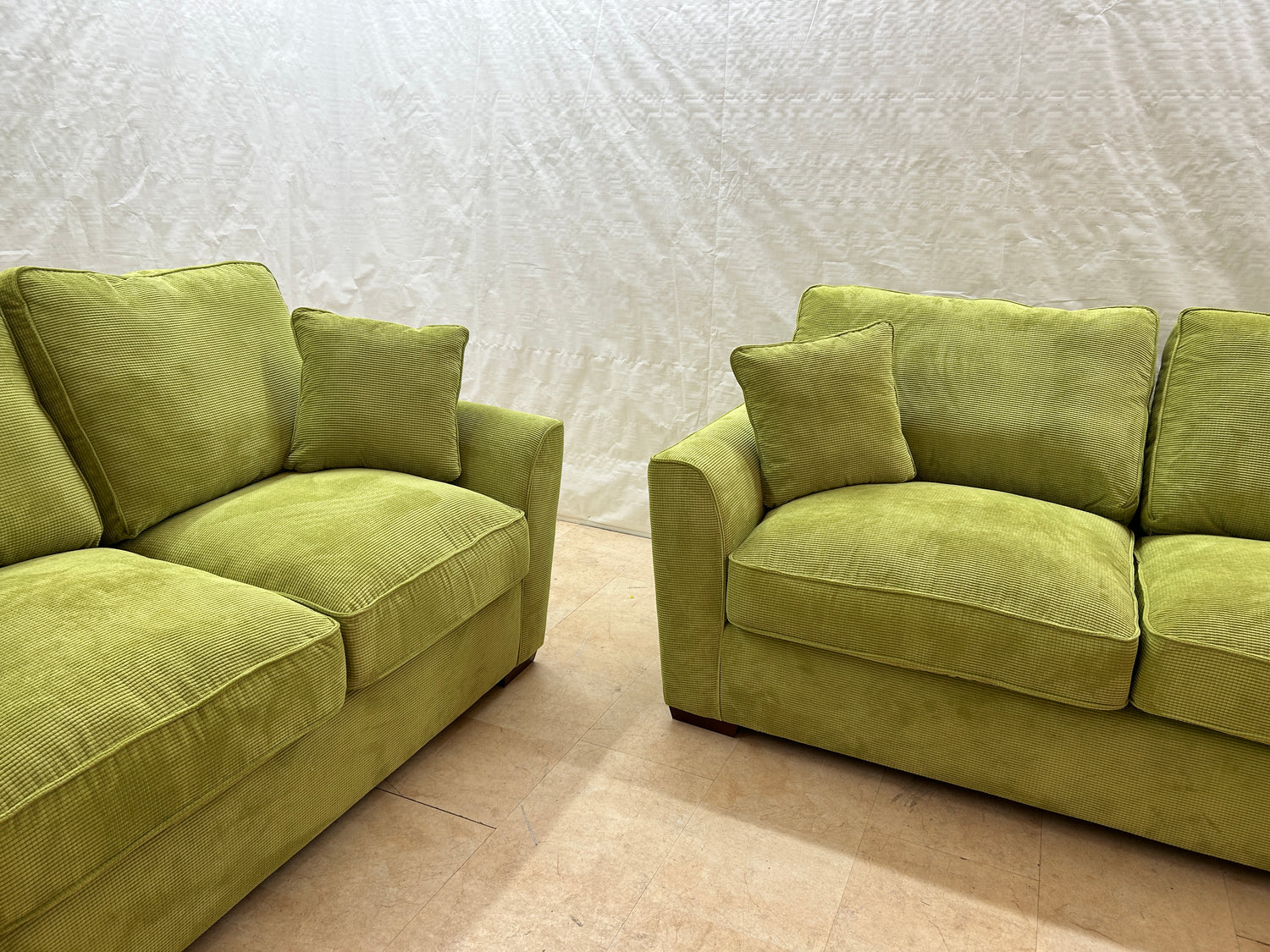 Ex-Display Fantasy Apple Green 3 + 2 Seater Fabric Sofas | EXAPP