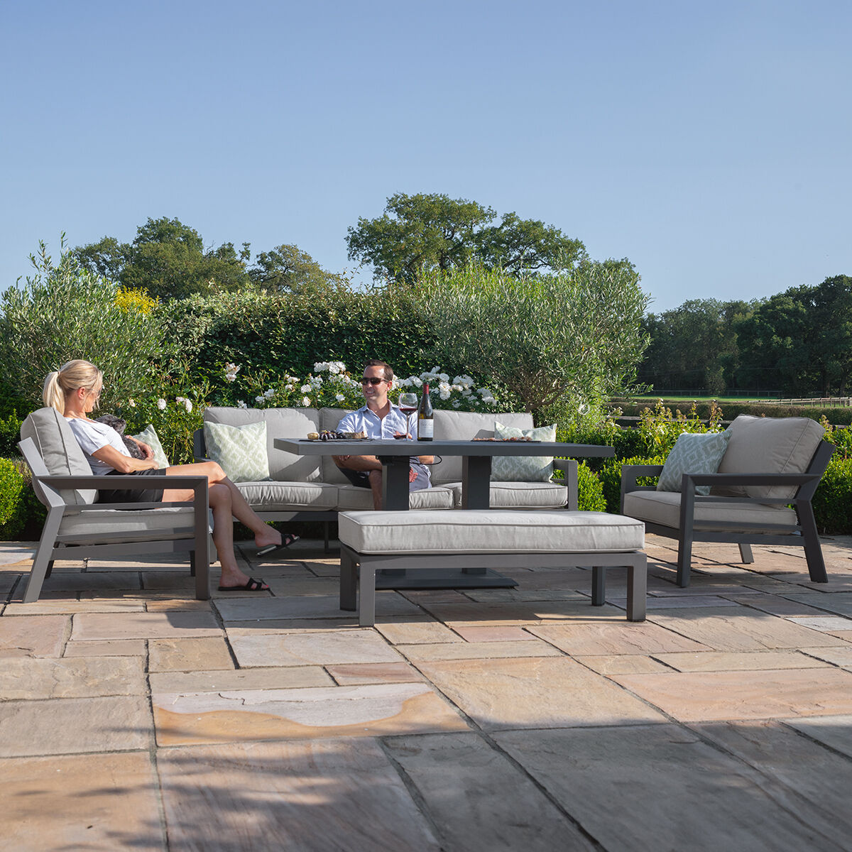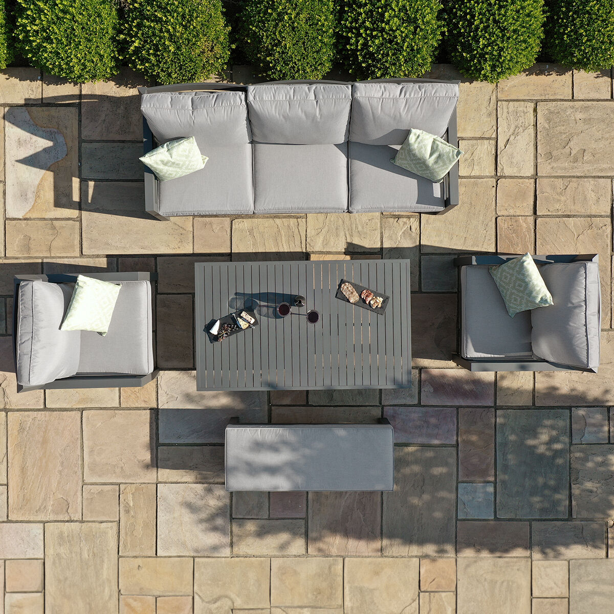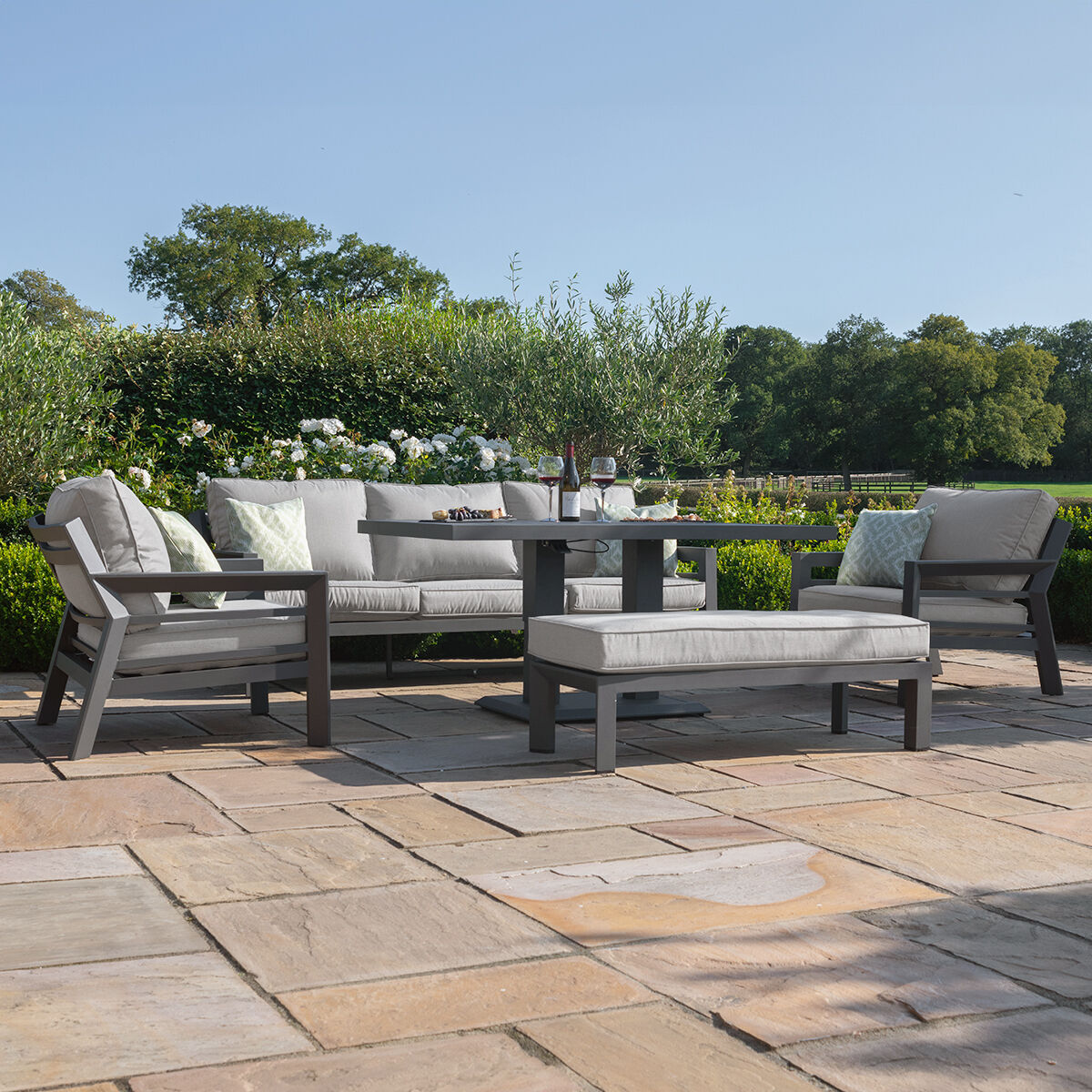 The Homeflair New York 6 Seat Round Dining set is crafted with maintenance-free grey aluminium and offers luxurious padded seating with showerproof cushions for maximum comfort. The set is finished with a contemporary round dining table which will effortlessly transform your outdoor living space.
