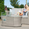Crafted with our best-selling Oxford weave, this new Oval Coffee table with Fire Pit is the perfect warm addition to any garden. Add it to your existing Oxford furniture to enhance it and provide warmth into the late hours of the evening. Our fire pit systems will accommodate a 5kg green patio gas bottle which can be stored underneath the table. We anticipate each gas bottle will last for approximately 6-7 hours.