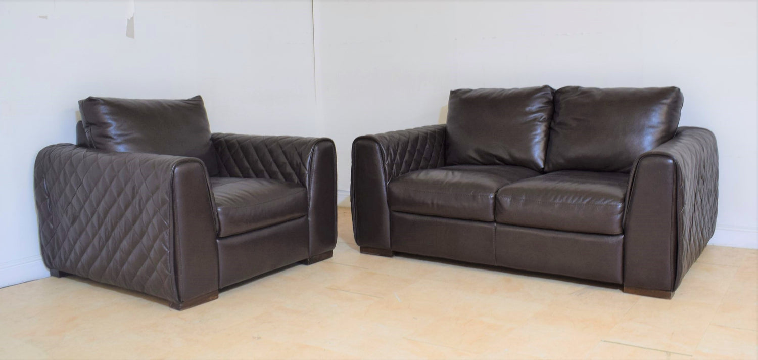 Waffle Arm Ex-Display Leather Brown 2 Seater Sofa + Chair | EXA87