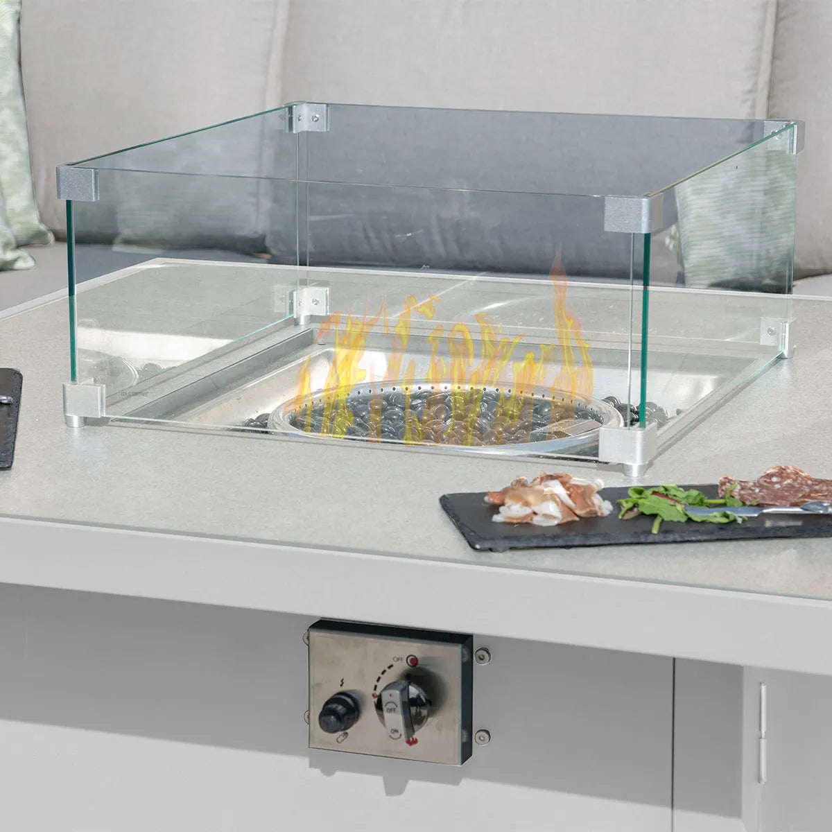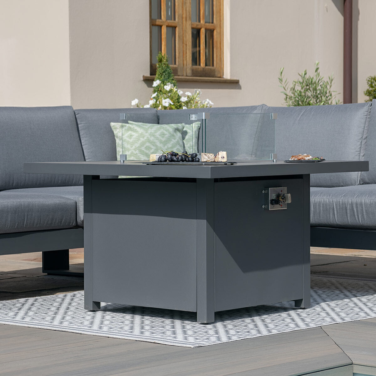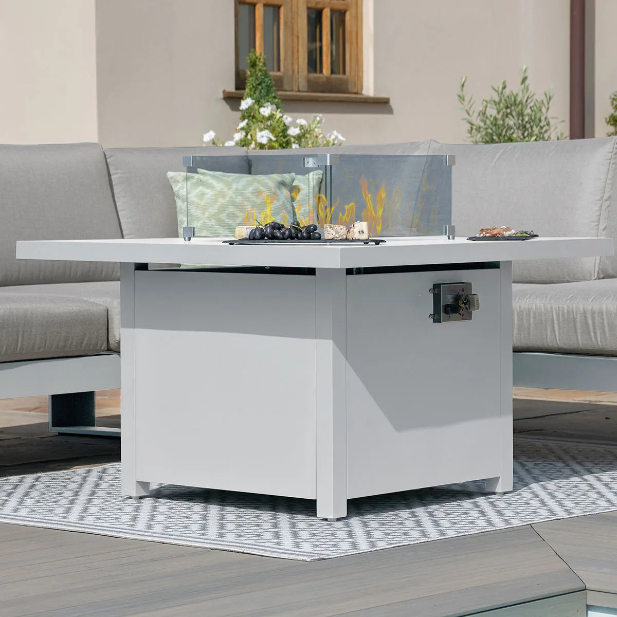 Stylish fire pit tables (square or rectangular) for warmth and ambience