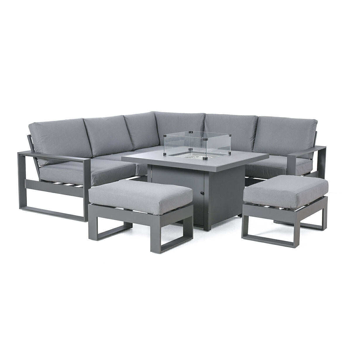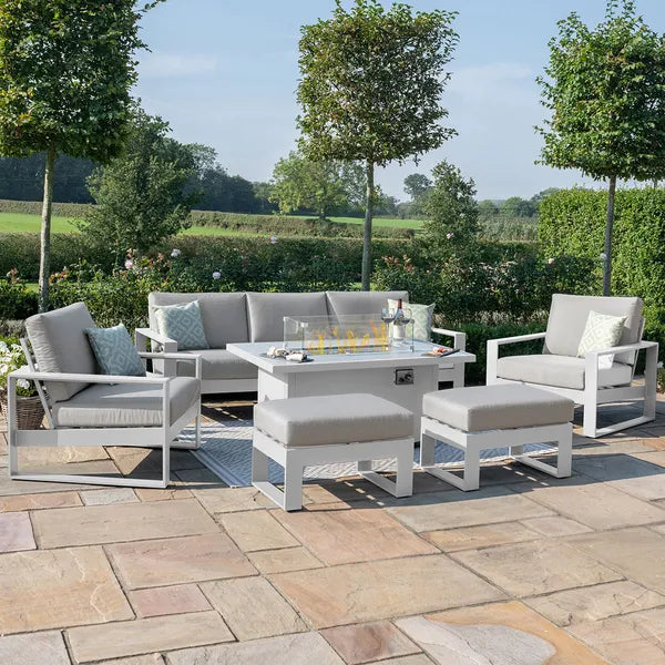 Each set in the Amalfi range features a striking aluminium fire pit table—available in square or rectangular formats—that adds warmth and ambience to your outdoor space, making it perfect for enjoying evenings with friends and family all year round. The compact corner design of the Small Corner Group maximises space, making it ideal for smaller gardens or patios, while the 2 Seat and 3 Seat Sofa Sets offer a more expansive seating solution for larger gatherings.