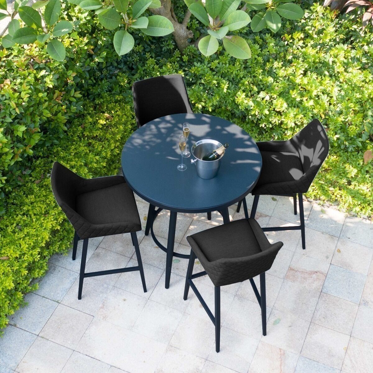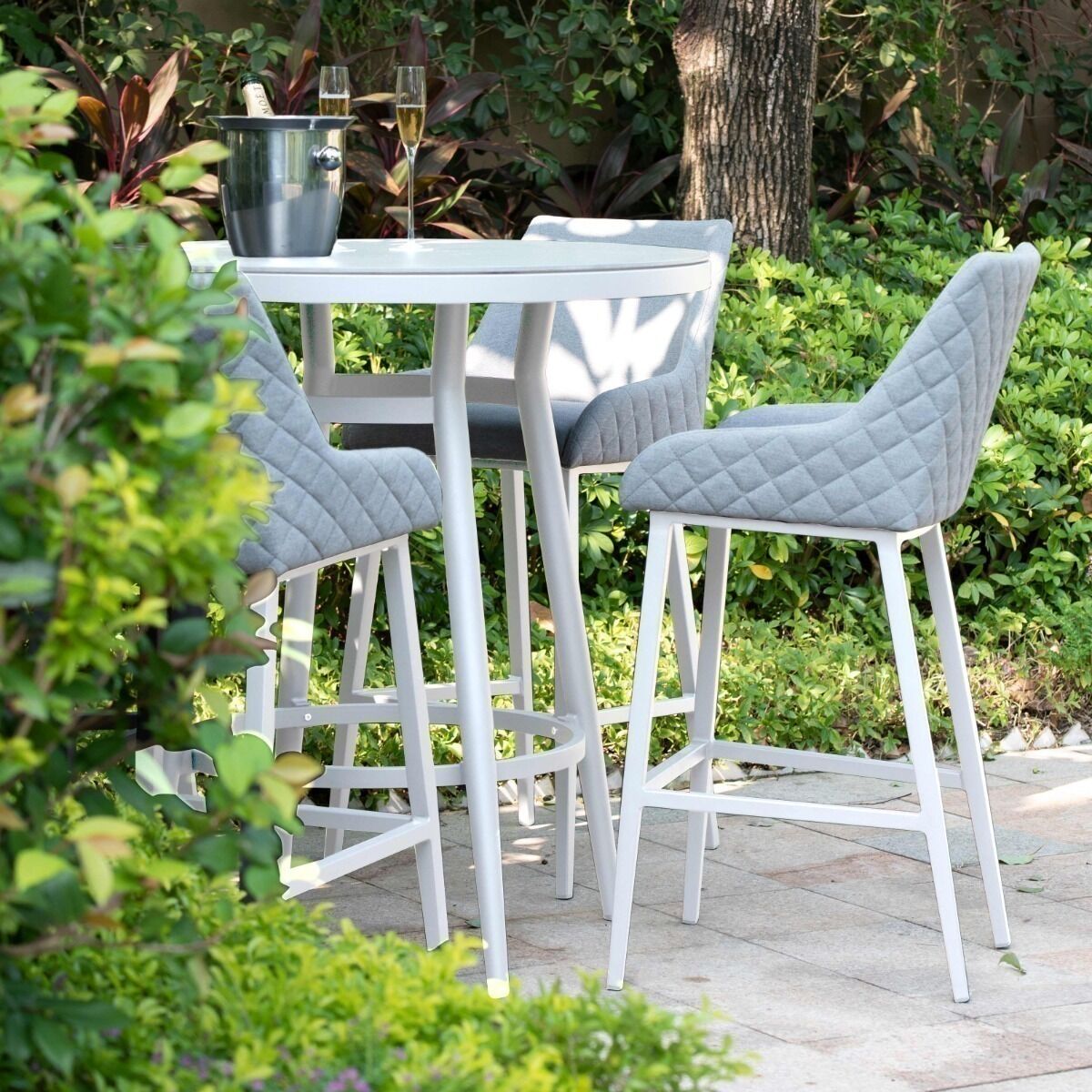 The Regal 4 seat bar set is the perfect blend of opulence and masterful design, the high bar stools stitched with quilting on the outside which simply oozes contemporary design. Long evenings with friends inspired the Regal, with a strong back support, and a place to rest your legs.