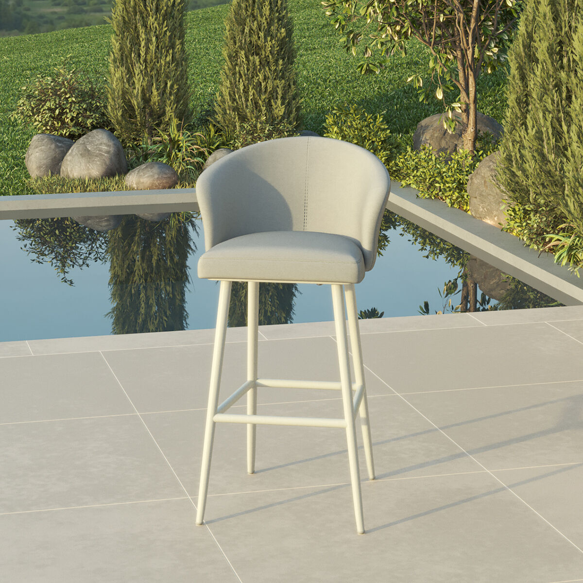 The Zen bar stool is the perfect accessory when creating an outdoor kitchen or bar set up. The Zen bar stool can be left outside all year round as they are hand crafted using sturdy aluminium framing and all weather outdoor fabric.
