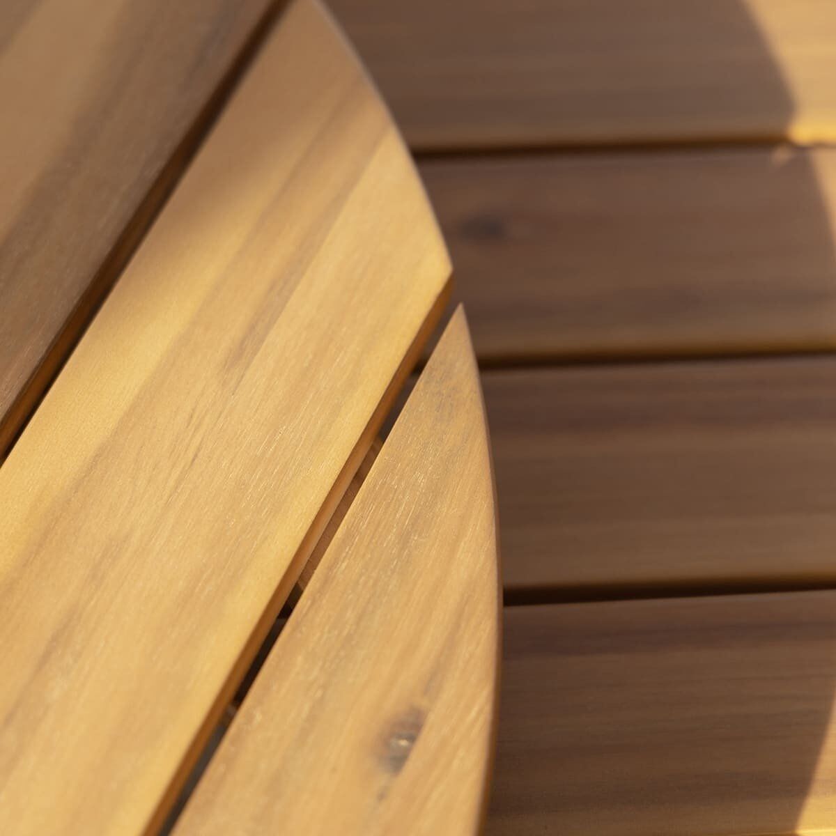 The Martinique 2-seat sofa Set showcases the acacia wood throughout this garden furniture set. Over time, this acacia wooden lounge set will gradually transition into a silvery grey hue, enhancing the character of your outdoor furniture. Each piece has been crafted with a PU coating, bolstering the wood’s durability, and requires less maintenance.