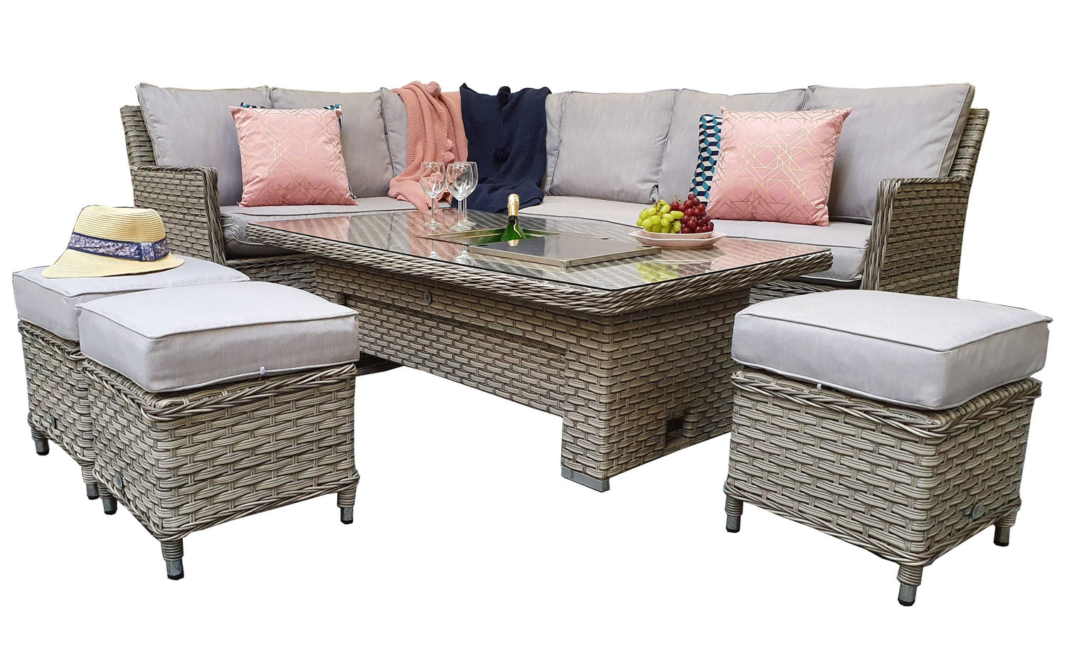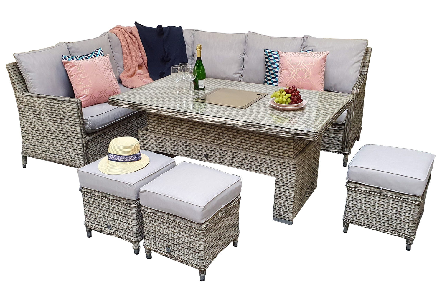 Rattan Corner Dining Sofa with Lift Table and Ice Bucket | Edwina