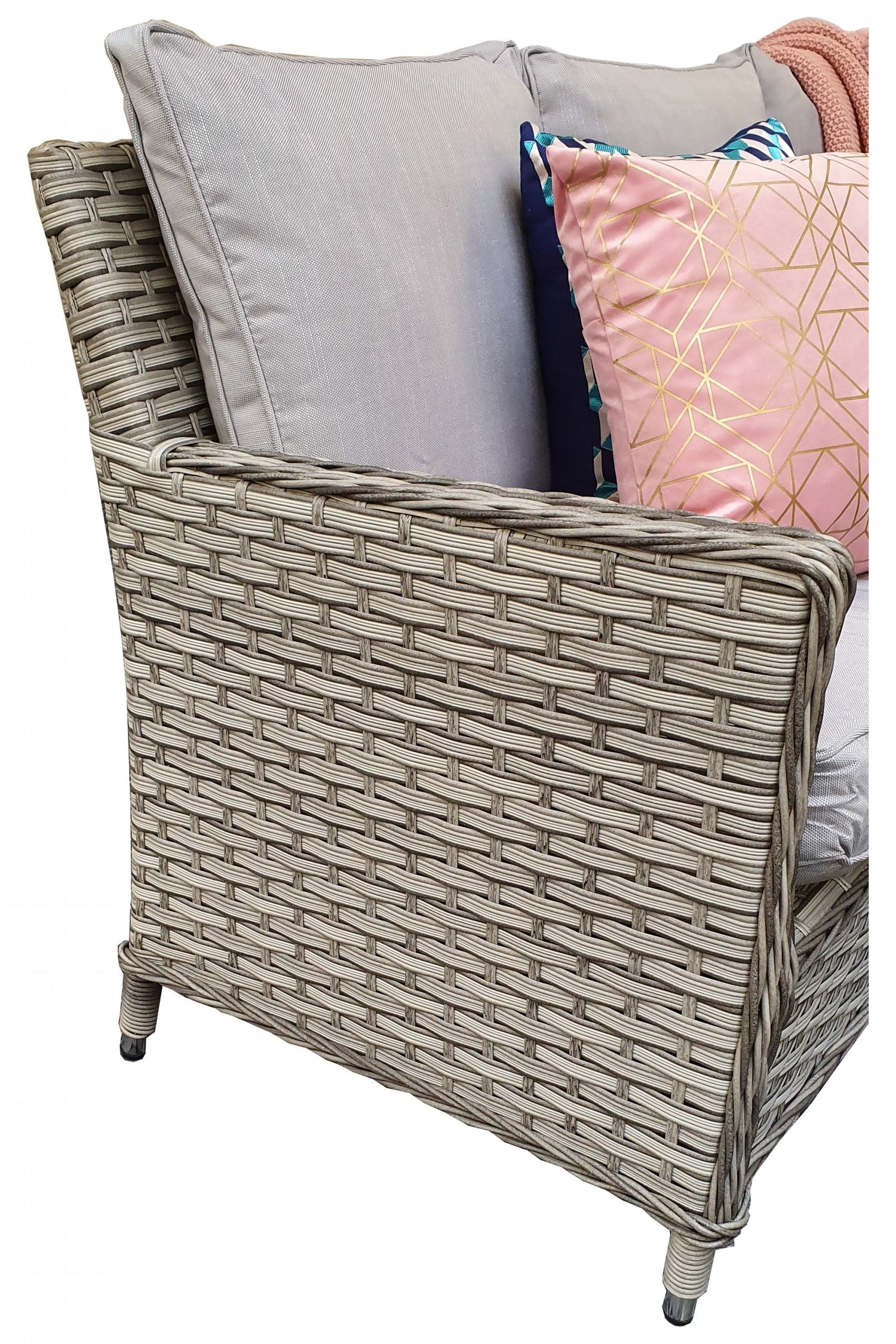 Designed for both comfort and elegance, the Edwina set offers generous seating for up to nine people, making it ideal for larger families or those who love entertaining. The smart L-shaped design fits neatly into corners, making the most of your patio or decking. With its plush, padded cushions and sleek aluminium frame, this set is built for all-day comfort and lasting durability.