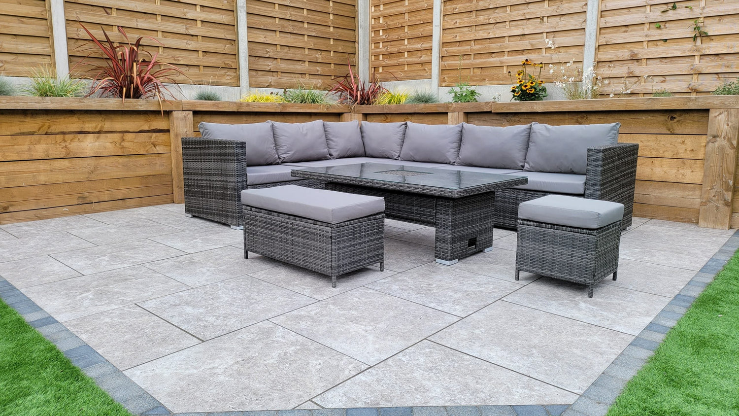 The Catalina corner sofa is designed to comfortably seat 6–8 people, making it perfect for family meals or entertaining guests in your garden.