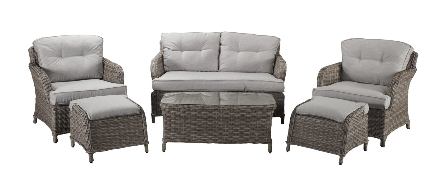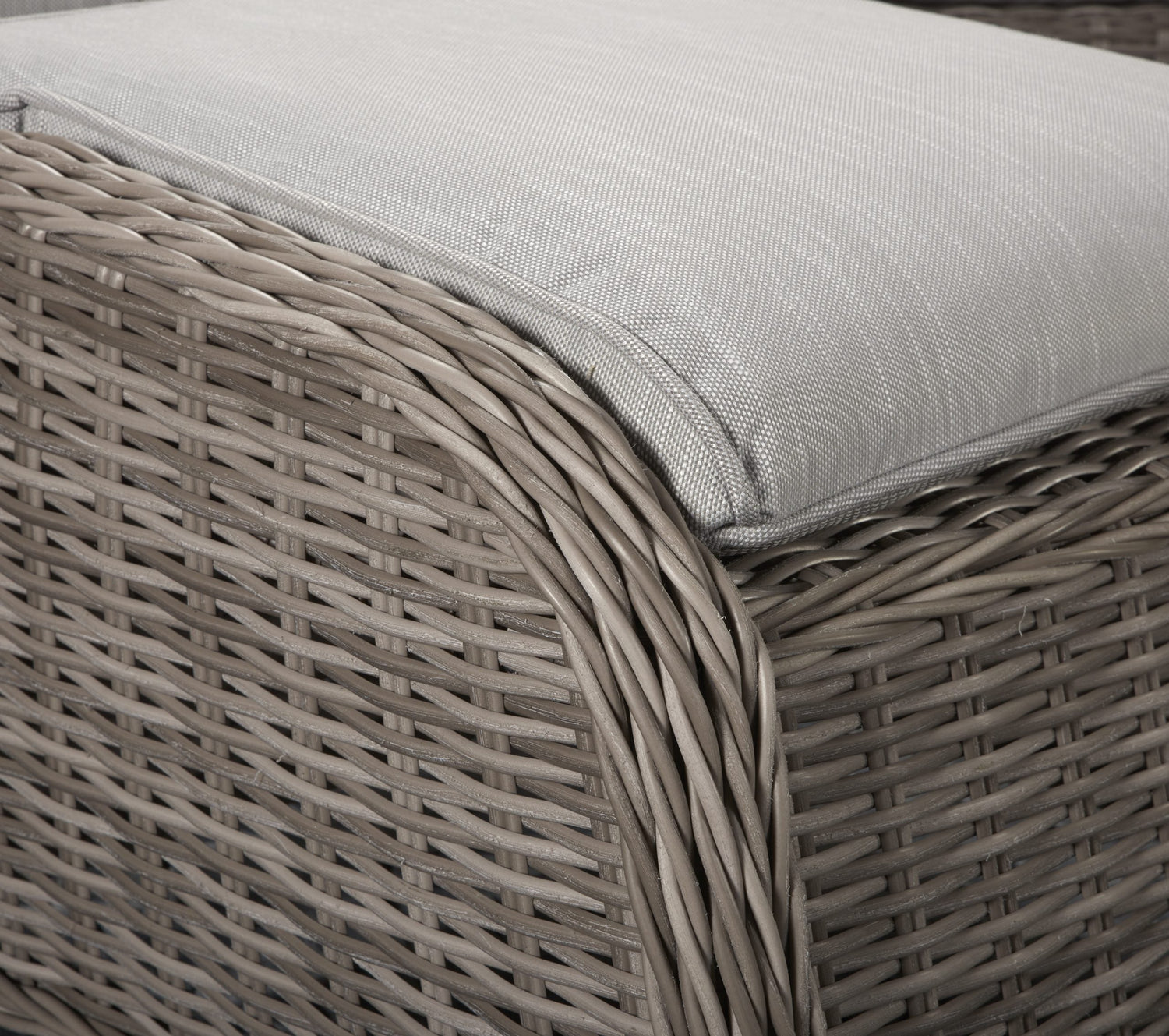 Built on a durable powder-coated aluminium frame, the Harriet set is wrapped in fine grey 5.5mm half-round all-weather wicker, ensuring long-lasting performance and easy maintenance. The accompanying cushions are upholstered in soft, Silver Grey fabric, offering a plush feel and neutral tone that blends seamlessly into any décor. Whether you're upgrading your orangery or enhancing your garden lounge area, this set provides the perfect balance of luxury and practicality.