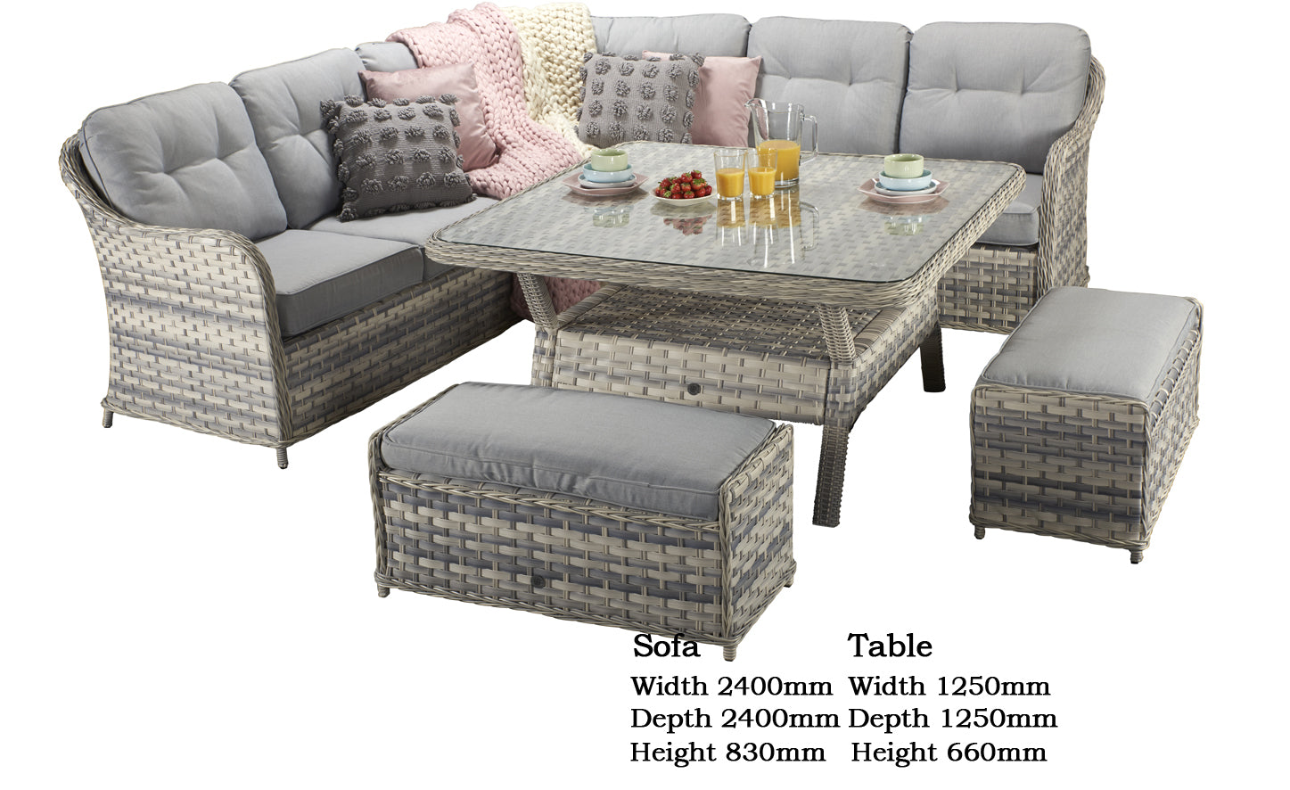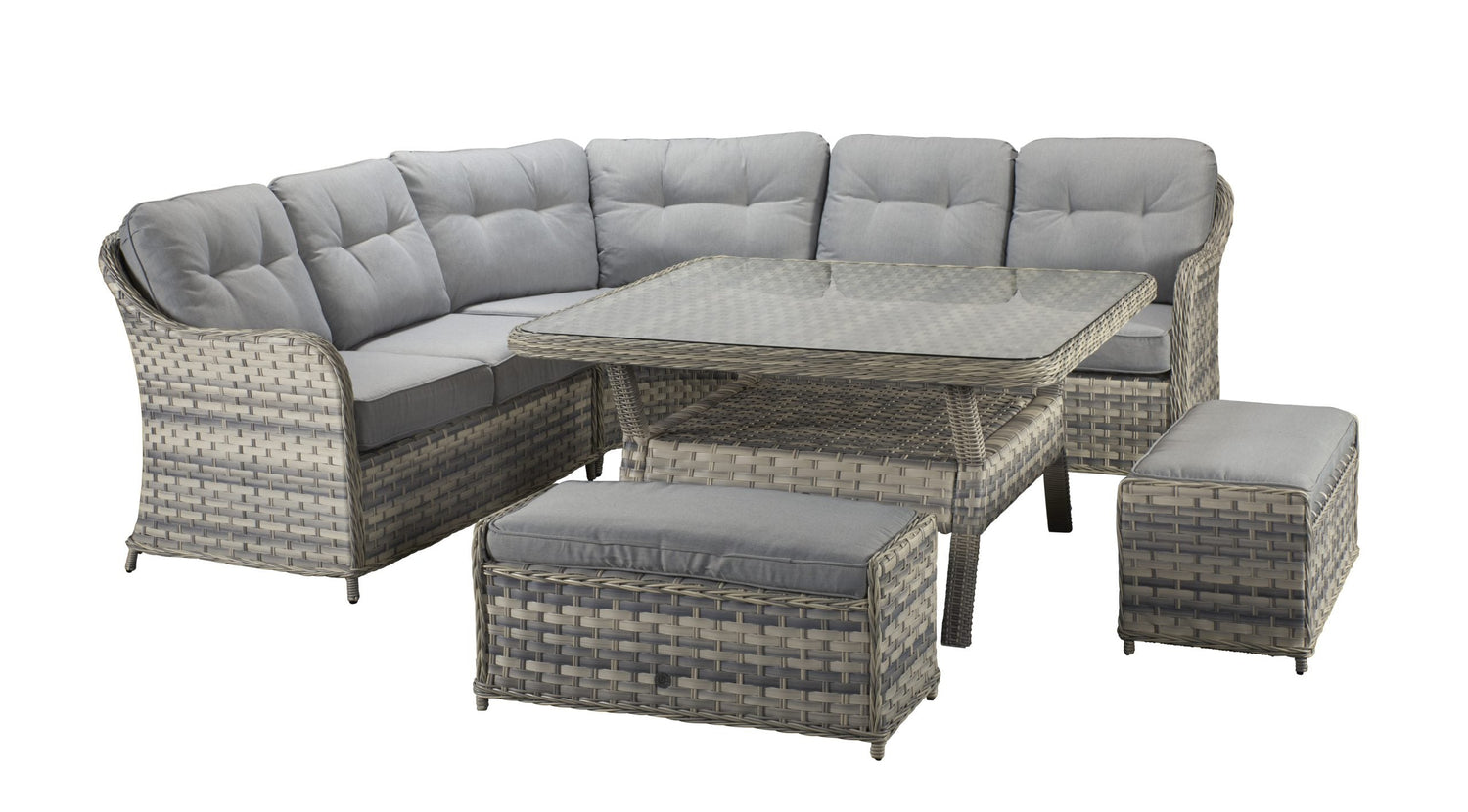 Rattan Large Corner Dining Sofa with Benches in Grey | Constance