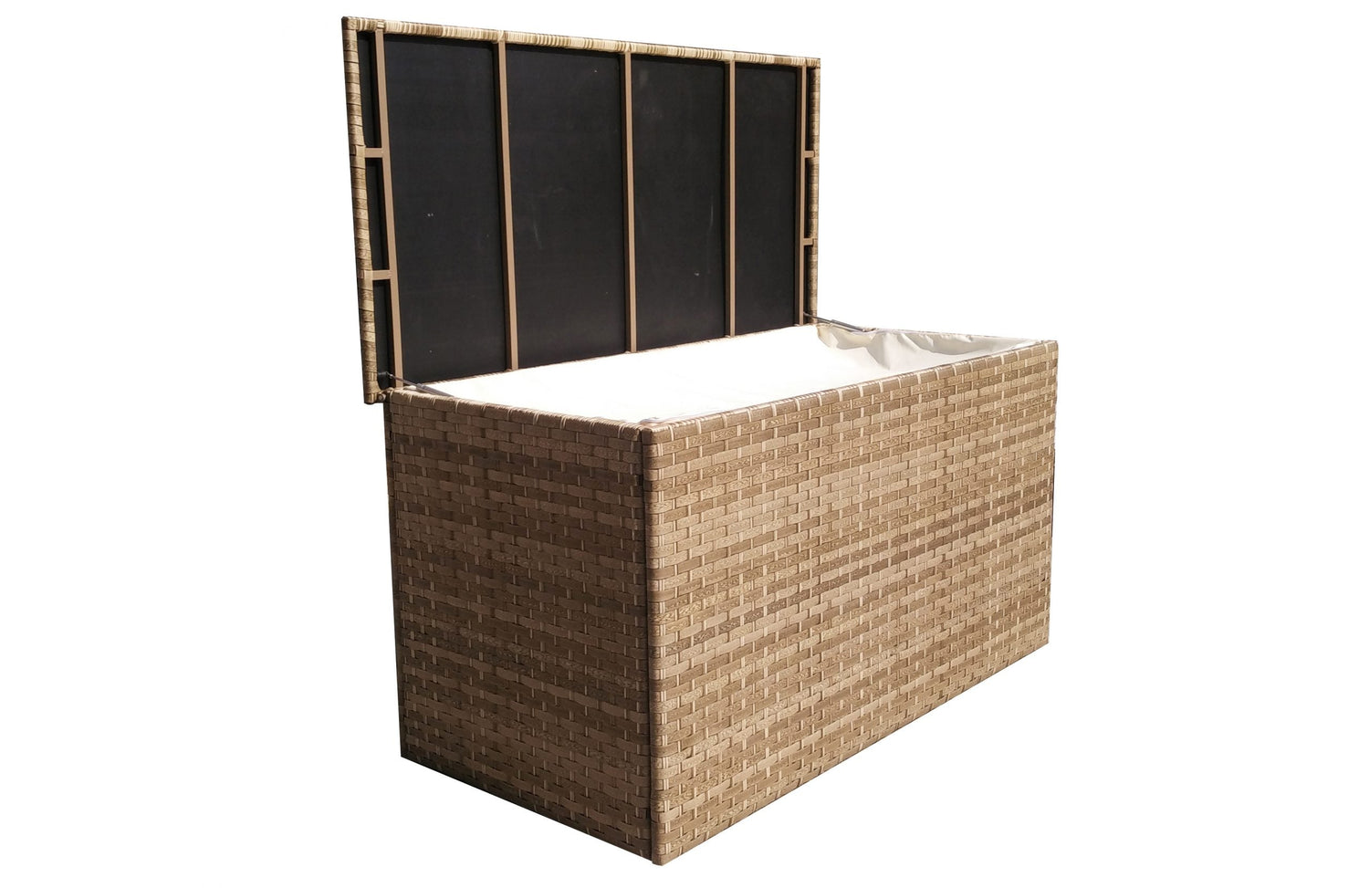 Because the caramel weave echoes many rattan garden furniture collections, the box blends effortlessly with dining sets, loungers and bistro chairs. Pair it with your existing Signature Weave pieces or mix it into aluminium frameworks for a soft, textural accent.