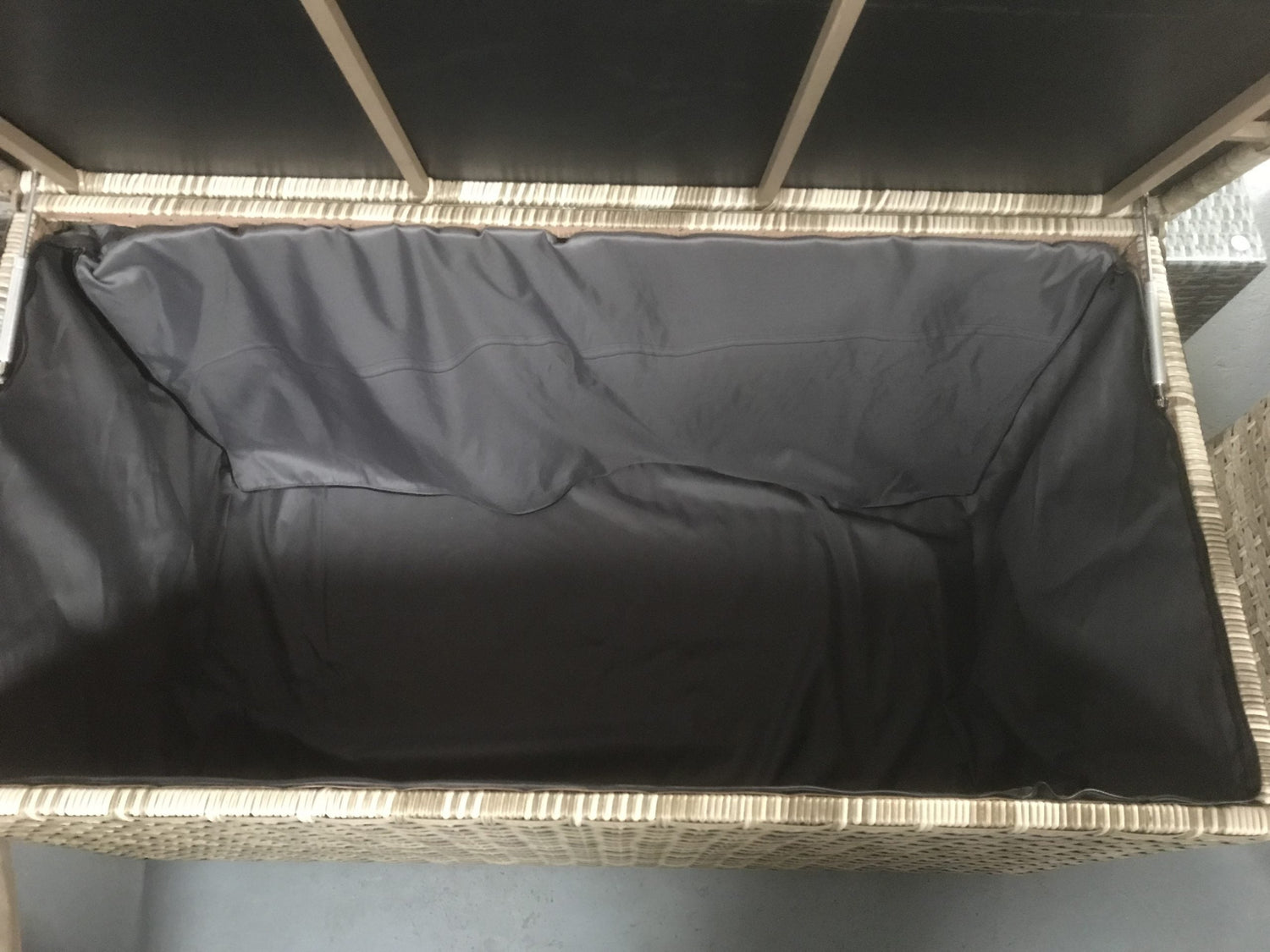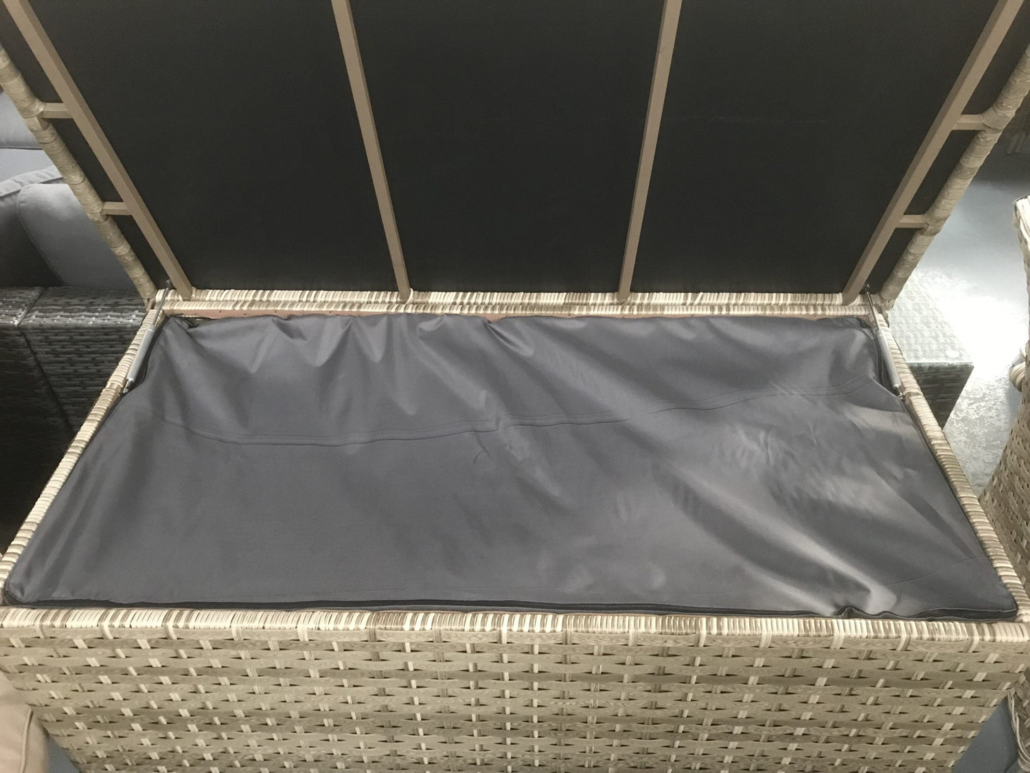 The cushion box features a weather-resistant inner lining, making it splashproof and suitable for storing cushions during light rain. However, we recommend storing cushions indoors during heavy downpours.