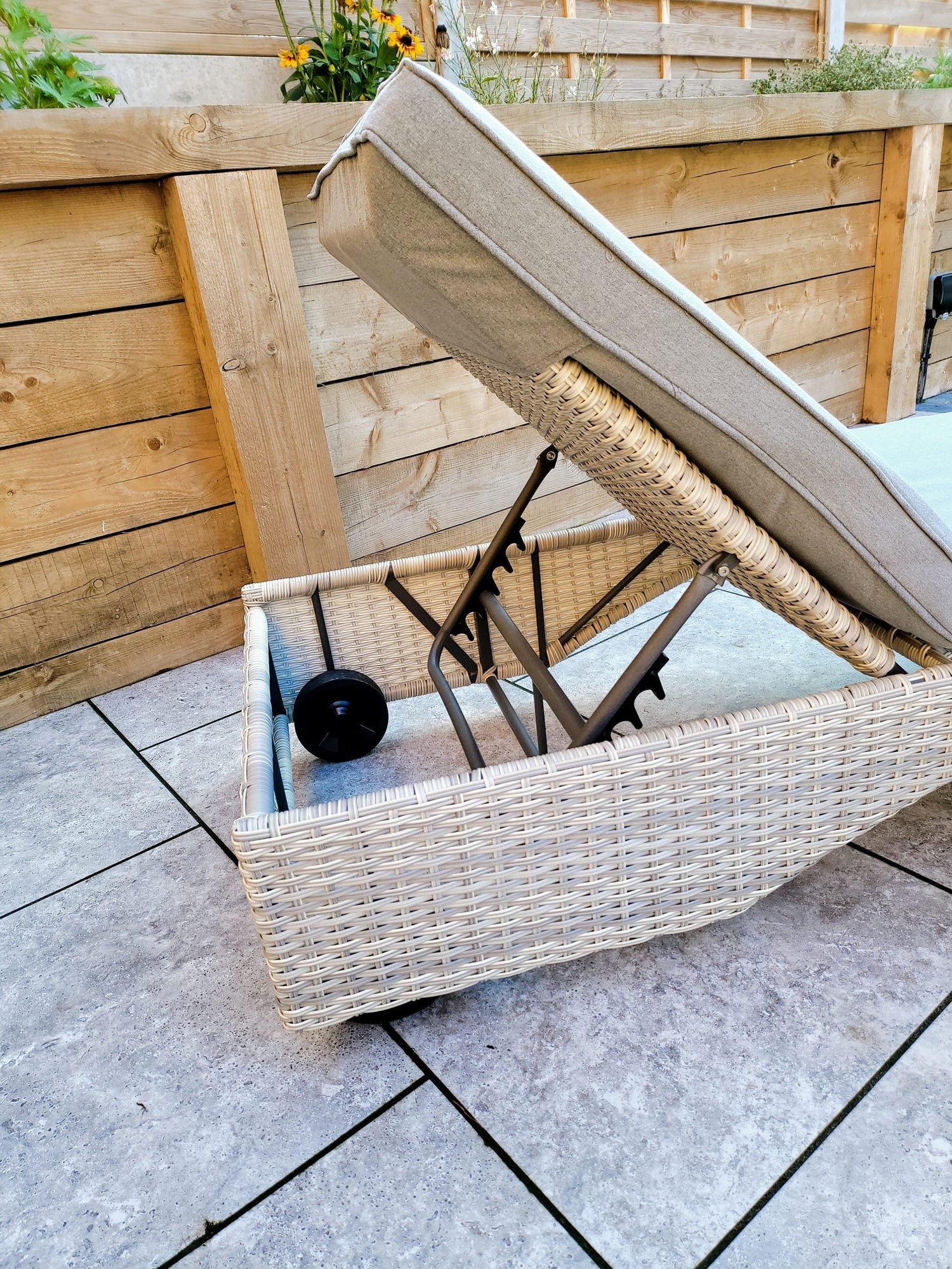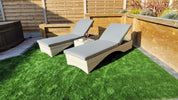 Crafted with both relaxation and resilience in mind, the Meghan set includes two premium rattan sunbeds and a matching drinks table, making it ideal for couples, friends, or anyone looking to enjoy warm summer days in style. The high-strength powder-coated aluminium frame ensures long-lasting durability, while the weather-resistant, stain-resistant fabric means minimal maintenance and maximum enjoyment.
