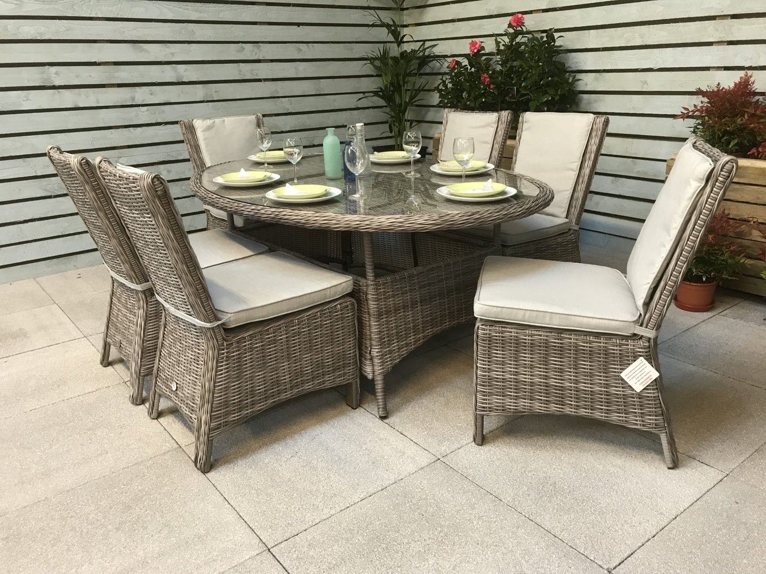 Bring five-star luxury to your garden with the Alexandra Rattan Dining Set. In stock and ready for fast UK delivery — shop today and dine outdoors in elegance all summer long.