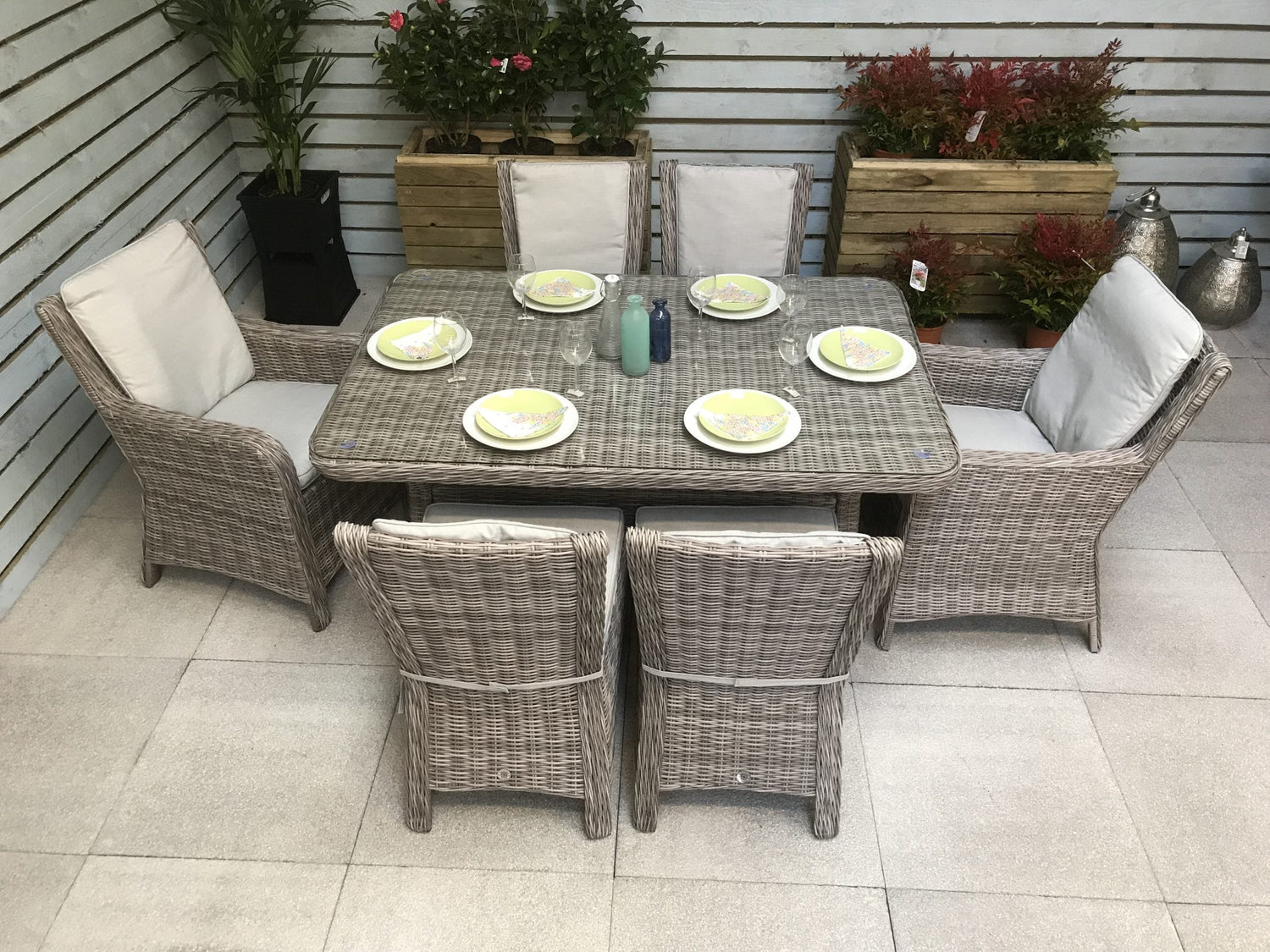 Yes, the Alexandra rattan dining set is made from durable, weather-resistant materials that can withstand the UK’s unpredictable climate. We recommend using a protective cover during heavy rain or snow for added longevity.