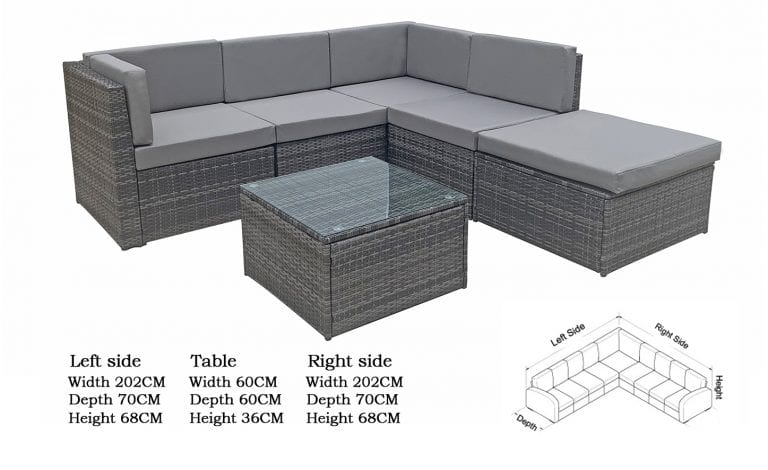 Corner Unit: 70cm (W) x 70cm (D) x 68cm (H)