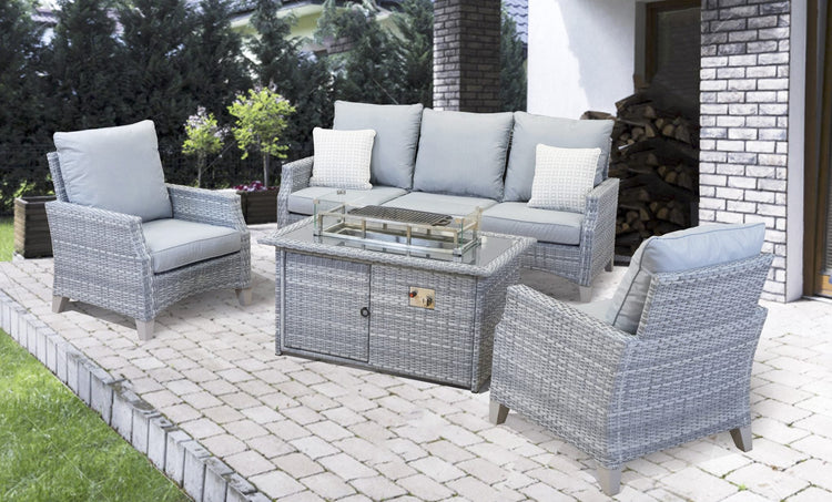 Rattan Windchester Casual 3 Seater Sofa + 2 Chairs Set with Firepit Table | WINS34FGGE