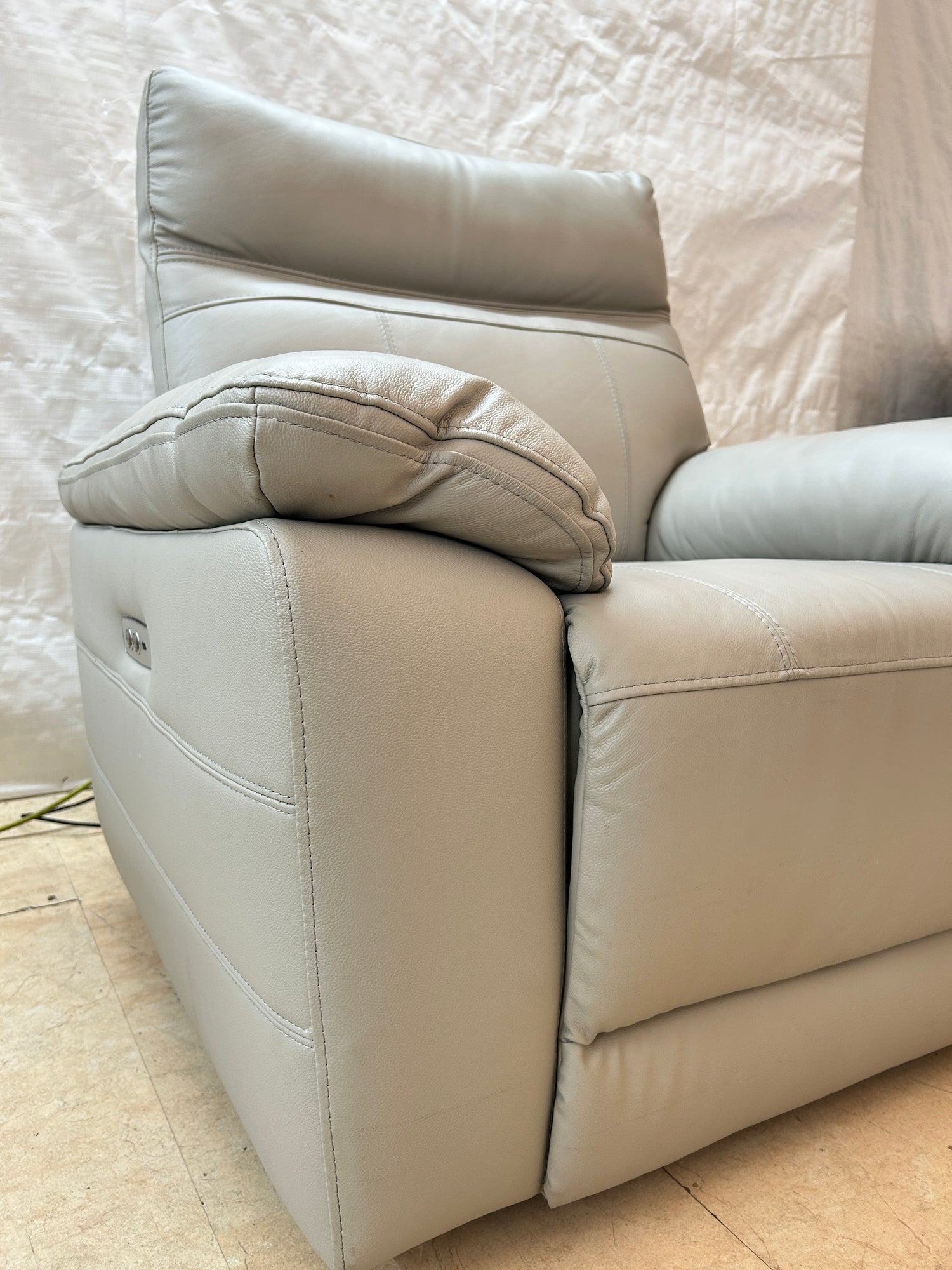 Ex-Display Positano Pale Grey Leather Manual Recliner Corner Sofa + Electric Chair