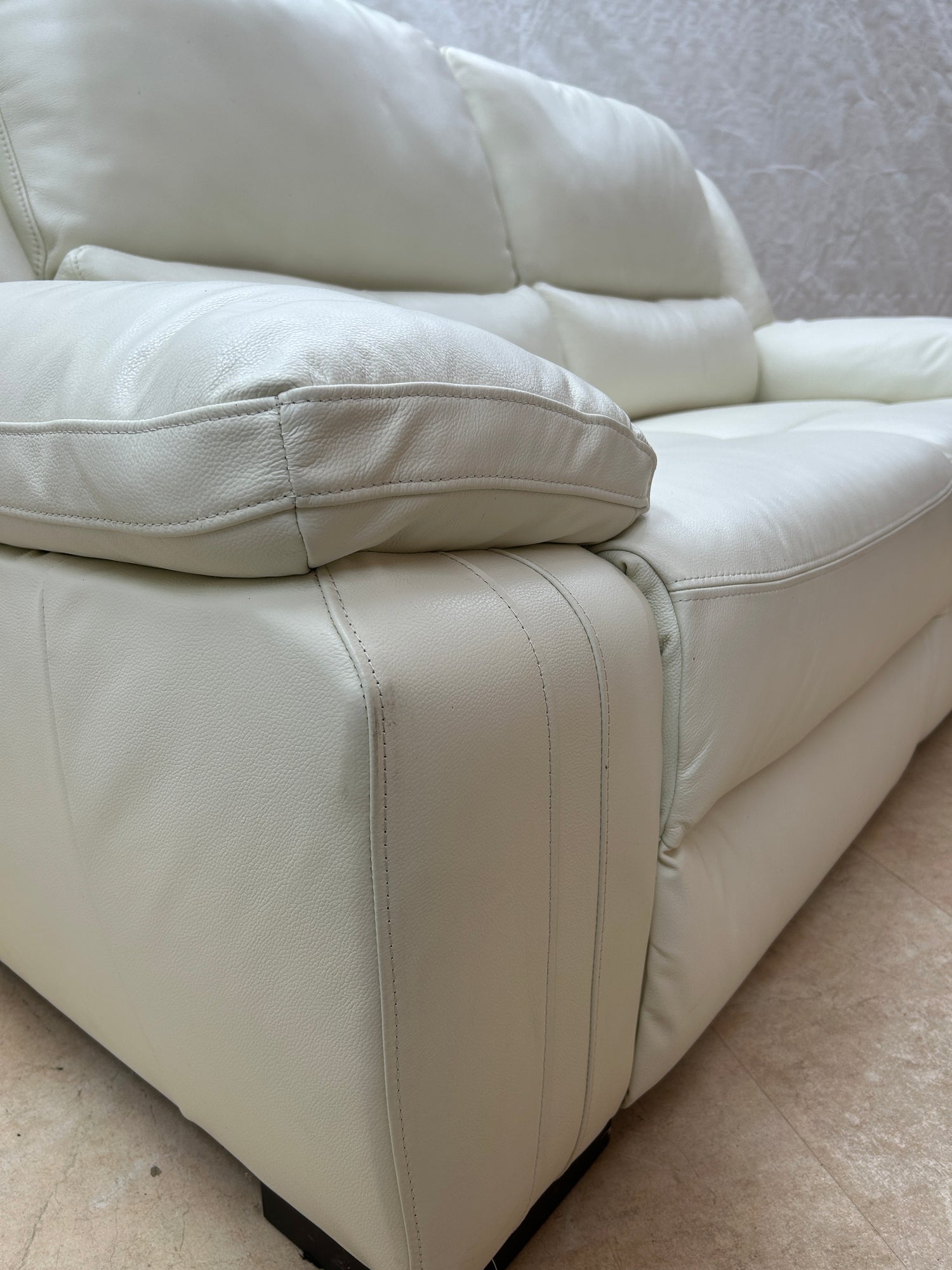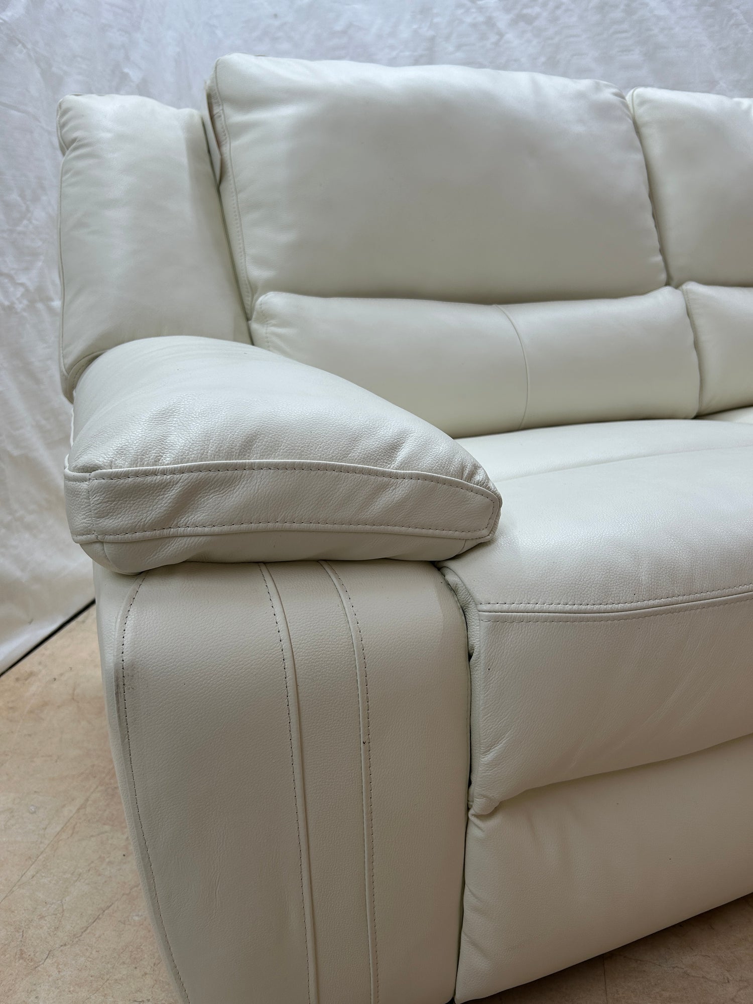 Upgrade your living space with the stylish Fallon 3 Seater Sofa. Upholstered in sumptuous cream leather, it offers deep cushioning and generous comfort for everyday relaxation. With its modern design and sturdy build, this ex-display piece delivers premium style at an exceptional price. Perfect for any contemporary home.
