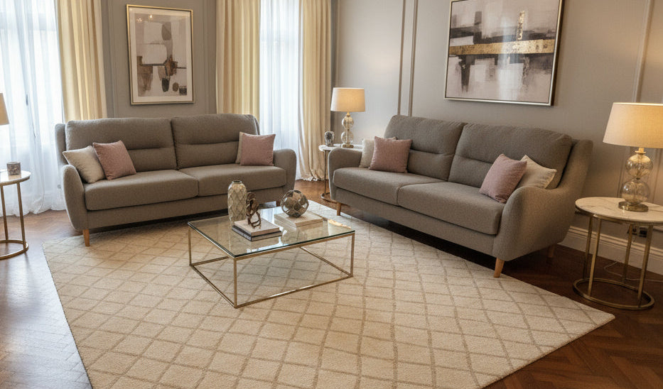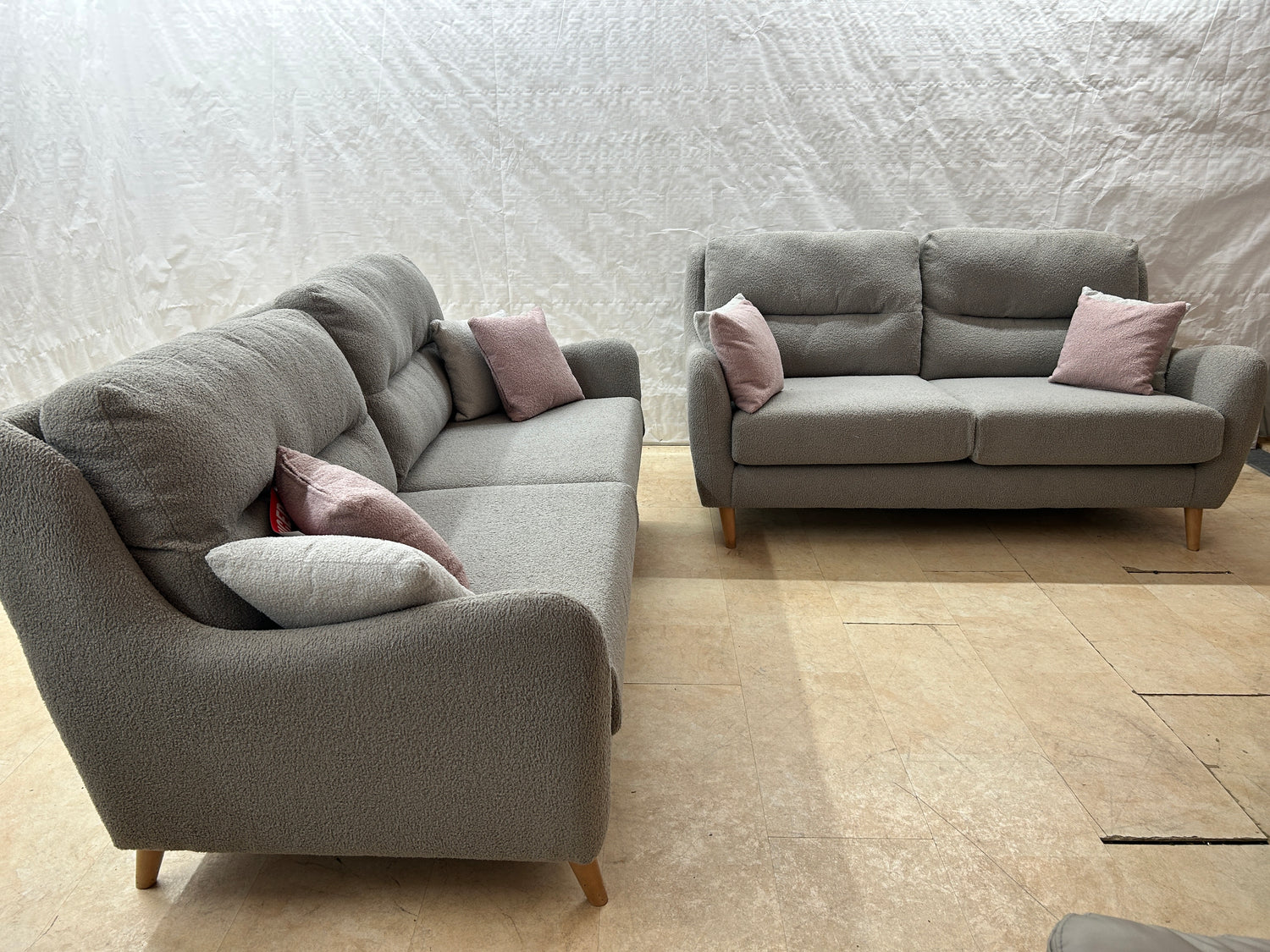 Ex-Display Porto 3 + 2 Seater Grey Boucle Fabric Sofa Set